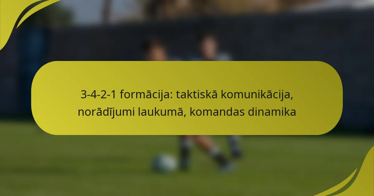 Taktiskā komunikācija 3-4-2-1 formācijā ir būtiska, lai koordinētu spēlētāju kustības un stratēģijas laukumā. Tā ietver skaidras informācijas apmaiņas starp spēlētājiem un starp spēlētājiem un treneriem, lai nodrošinātu efektīvu taktikas izpildi spēles laikā.