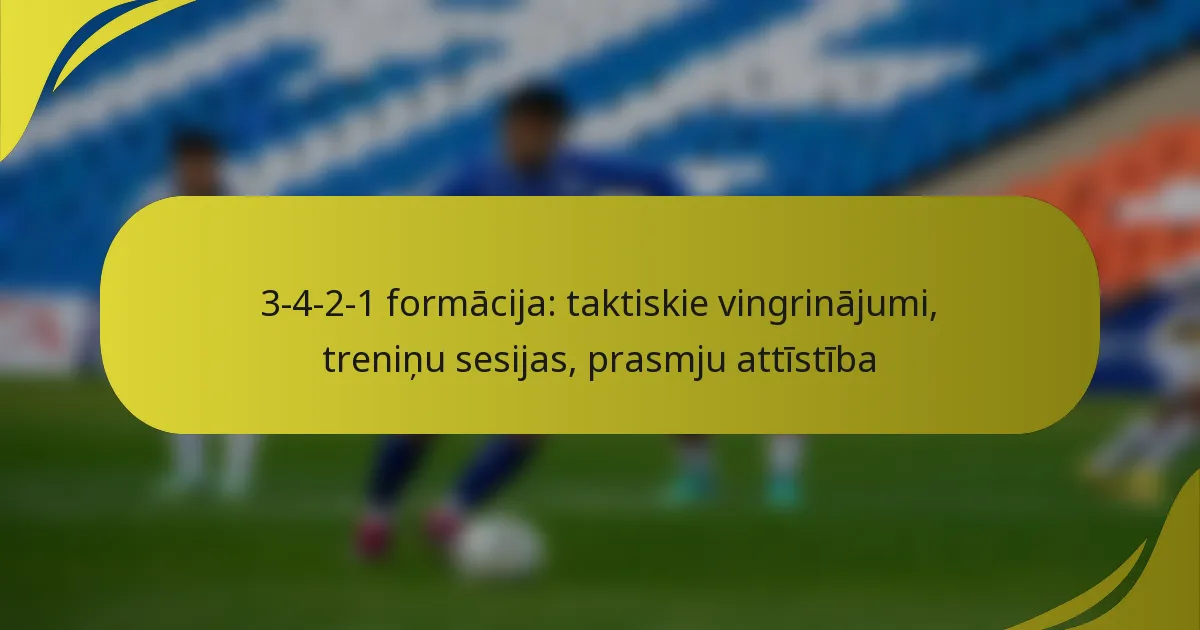 Taktisko vingrinājumu īstenošana 3-4-2-1 formācijai ietver fokusu uz spēlētāju pozicionēšanu, kustību stratēģijām un komandas darbu. Šie vingrinājumi uzlabo prasmju attīstību un nodrošina, ka spēlētāji saprot savas lomas šajā formācijā.