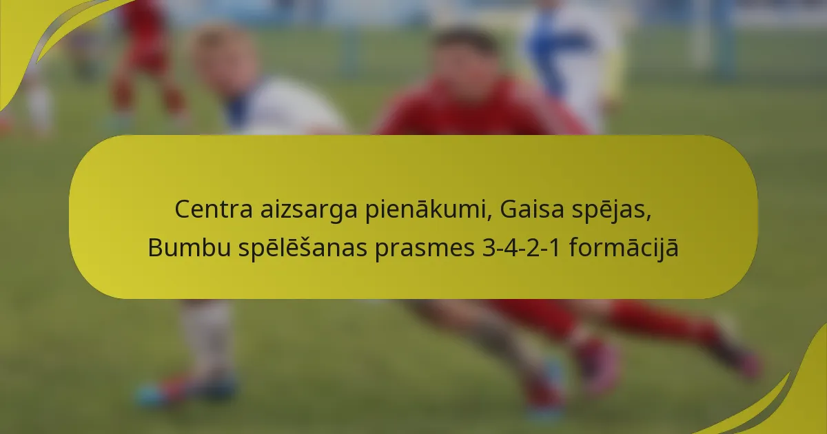 3-4-2-1 formācijā centrālie aizsargi spēlē būtisku lomu, līdzsvarojot aizsardzības pienākumus ar uzbrukuma atbalstu. Viņu atbildība ietver efektīvu pozicionēšanu, pretinieku atzīmēšanu un pāreju uz uzbrukumu, iniciējot uzbrukumus. Gaisa spējas ir būtiskas, lai uzvarētu duelus un saglabātu aizsardzības stabilitāti, kamēr spēcīgas bumbas spēles prasmes […]